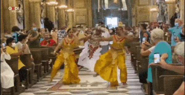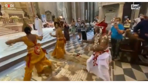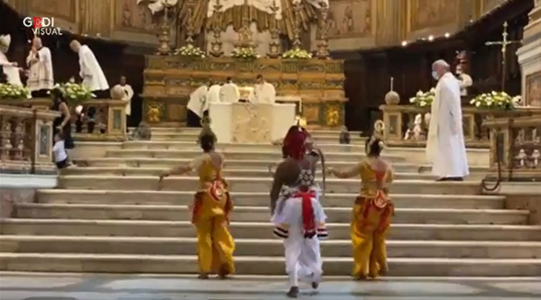 Ayer 15 de agosto de 2020, fiesta de la Asunción de Nuestra Señora, Card. Crescenzio Sepe presidió la misa de las 11 am en la catedral de San Gennaro, Nápoles. Para una ceremonia que tuvo lugar antes de la misa, invitó a los habitantes de Sri Lanka a realizar su danza tradicional de Kandy.A la actuación asistieron los obispos auxiliares de Nápoles, Lucio Lemmo y Gennaro Acampa, arriba en la parte superior izquierda .