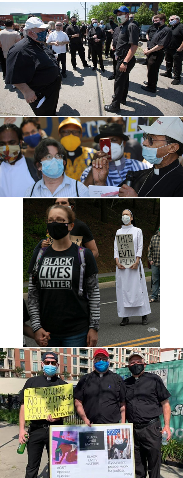 Abajo , cada vez más eclesiásticos se adhieren al movimiento Black Lives Matter: Quinta fila , Arzobispo de MinneapolisBernard Hebda; sexta fila, Washington Auxiliary Bishop Roy Campbell; séptima fila, Hermana Quincy Howard; octava fila, desde la izquierda, Atlanta Frs. Jason Braunninger, Victor Galier, Mark Horak.