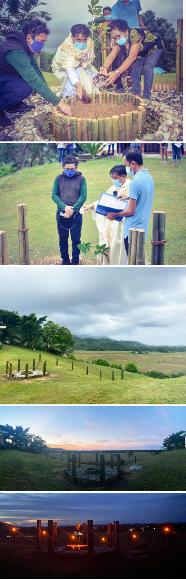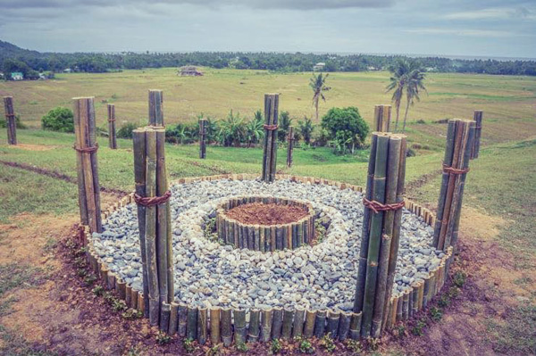 Su superficie de piedras está bordeada por siete pilares de bambú. En el centro de este heptagrama hay un lecho circular de tierra ligeramente elevado. En su centro se plantó un árbol local llamado "tigà", una especie en peligro de extinción.
