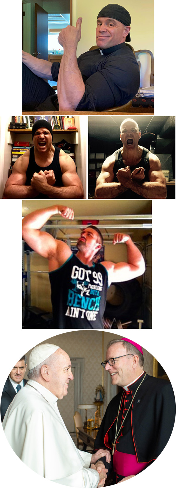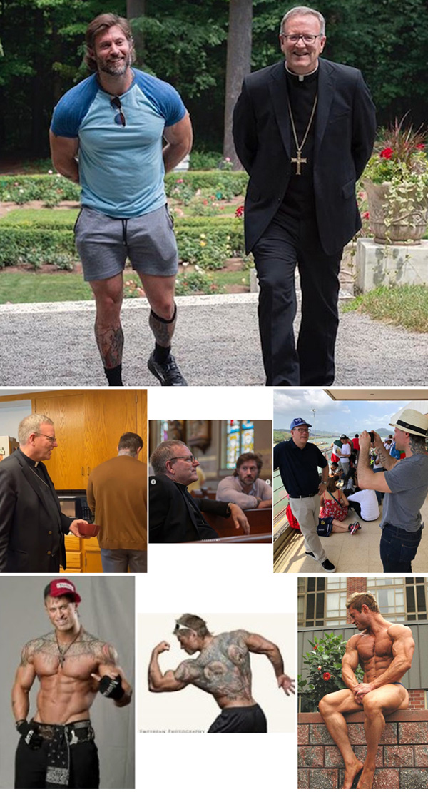 Un artículo reciente del sitio web Clean the Church llamó nuestra atención sobre la extraña "coincidencia" del obispo Robert Barron, obispo auxiliar de Los Ángeles, rodeado de jóvenes culturistas que están ansiosos por exponer sus músculos a la cámara.Todos ellos forman parte de Word on Fire orientado hacia la promoción del extravagante Barron. Hombres extravagantes, promoviendo a un sacerdote extravagante.