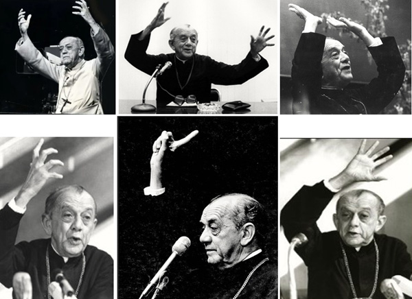 Cuarta fila, con los Papas Conciliares; Pablo VI solía llamar a Helder Camara "mi arzobispo rojo". Filas quinta y sexta, algunas tomas de sus gestos demagógicos que caracterizaron su forma de hablar.