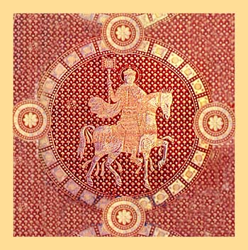 Un paño precioso que representa al emperador Constantino, cuyo famoso decreto dio libertad a la Iglesia. Salió de las catacumbas con una estructura y organización establecidas.