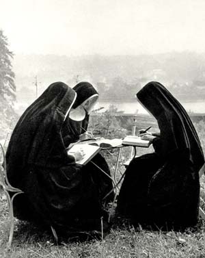 La seriedad ante la vida y la religión da una gran serenidad. Arriba, monjas preconciliares en el recreo.