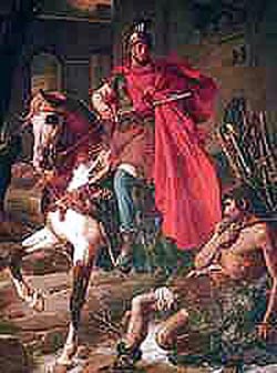 Si miras las biografías normales de San Martín, verás que generalmente no presentan este aspecto mostrado por Dom Guéranger. Cuentan el famoso caso de San Martín a caballo, deteniéndose ante un pobre y frío mendigo, y luego rasgando su manto por la mitad para compartirlo con él. Para un católico sentimental, este episodio resume toda la vida de San Martín.