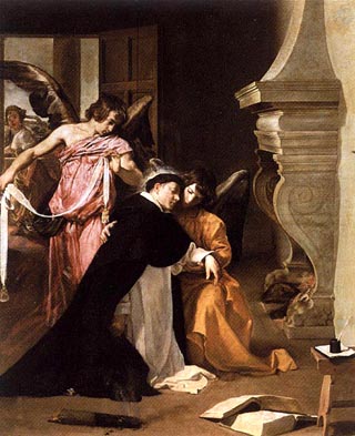 Santo Tomás está ceñido por ángeles con un cinturón místico de pureza después de su prueba de castidad