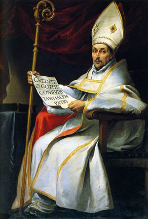 En ese momento, una parte del territorio de España estaba dominada por los visigodos. Esos bárbaros eran arrianos y habían esparcido sus errores en las ciudades conquistadas. La Península Ibérica estuvo infectada por esa herejía durante 170 años cuando San Leandro fue elegido obispo de Sevilla. Comenzó a combatirla de inmediato. Con la ayuda de Dios, a quien recurrió, sus esfuerzos tuvieron éxito y la herejía comenzó a perder a sus seguidores. También jugó un papel importante en la conversión de Hermenegildo, el hijo mayor del rey visigodo.
