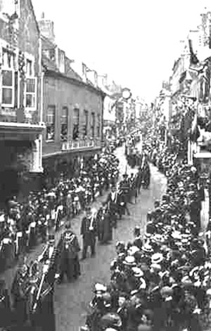 La costumbre medieval de instalar a los funcionarios con procesiones ceremoniales se prolongó hasta el siglo XX. Arriba , instalando rectores universitarios en Inglaterra