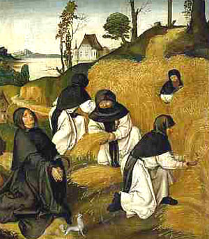 Los monjes rezan y cosechan cosechas. Joerg Breu el anciano