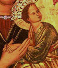 Para mí, el simbolismo más conmovedor es el gesto del Niño que sostiene la mano de Nuestra Señora. Su mano derecha está detrás de su pulgar y su mano izquierda dentro de su mano de una manera que le da a la mano de Nuestra Señora el control sobre las manos del Divino Infante. Simbólicamente, uno que sostiene las manos de otro lo sostiene por completo. Entonces, esta forma de presentar las manos del bebé expresa que ella puede hacer todo lo que quiera con Él; todo lo que ella le pide a Él está de acuerdo; expresa el poder de su oración. Con gran facilidad, el artista representa la dependencia del Niño-Dios de Nuestra Señora.