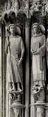 A la izquierda, el guerrero San Teodoro en la catedral de Chartres.