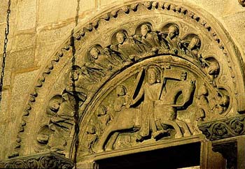 Santiago Matamoros, en el portal de la Catedral de Compostela, España