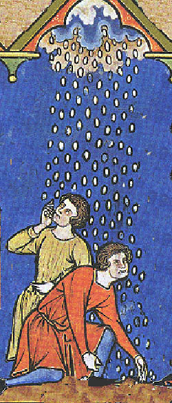 Entonces, viene el juicio. El diablo odia a los hermanos y para castigarlos, de nuevo es una escena de Fioretti , arroja del cielo un aguacero de piedras afiladas. Los dos, tan buenos y tan rectos, son molestados por esa lluvia de piedras y no pueden continuar sus oraciones. Después de que esto sucede varias veces, deciden abandonar el lugar.