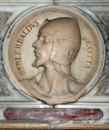 Erlembald o Eriembaldo fue un señor milanés, un intrépido caballero de Cristo que murió en 1075, perteneció a la ilustre familia milanesa Cotta y se convirtió en capitán de armas en su juventud. Aunque no era un hombre robusto, era valiente como un león. Muy rico, su palacio milanés rivalizaba en magnificencia con el castillo de un rey. Sin embargo, su corazón no se volvió hacia los bienes de la tierra, sino más bien hacia Dios.