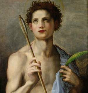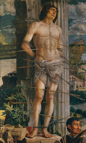 Encima, San Sebastián retratado cerca de la realidad; abajo , según la escuela de piedad sentimental