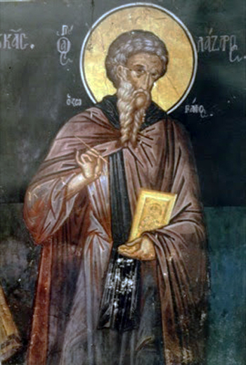 Lázaro nació en el Monte Cáucaso y dejó a sus padres a temprana edad para ir a Constantinopla donde abrazó la vida religiosa. Más allá de los ejercicios ordinarios de la vida monástica, aprendió pintura, arte cultivado en los claustros, especialmente en Constantinopla.