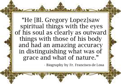 Ustedes ven en la vida del Beato Gregorio López que fue un gran contemplativo - debidamente reconocido por la Iglesia que lo nombró Beato - cuya contemplación estaba vuelta hacia Nuestro Señor y Nuestra Señora a través de las cosas temporales. Su estudio sobre las propiedades de las plantas y hierbas revela que tenía este tipo de perspectiva. Además, el hecho de que fuera un cartógrafo experimentado capaz de dibujar su propio mapa del mundo demuestra que también contemplaba a Dios en la distribución que hacía de la tierra, los continentes, los ríos y los océanos.