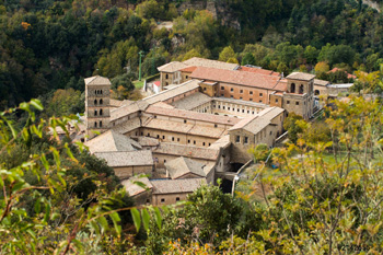 Abajo, Abadía de Santa Escolástica, en Subiaco, Italia