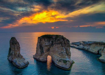 Líbano, famoso por sus hermosas puestas de sol; abajo el Monasterio de St. Maroun donde Bl. Charbel se quedó