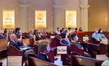 Solo unos pocos católicos pueden regresar a misa; arriba, Iglesia Católica de San Jorge en Baton Rouge