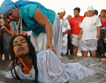 Arriba, Carismáticos "católicos" que reciben el "Espíritu Santo"; abajo , una mujer del vudú brasileño - Candomblé - recibiendo un orixá