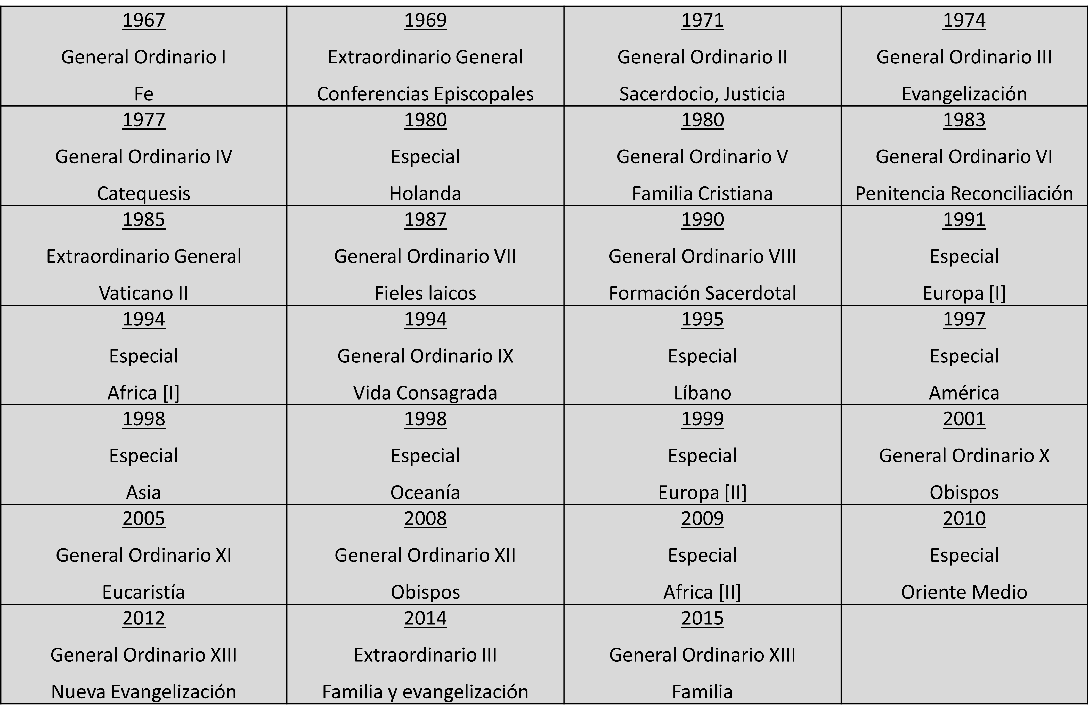 Los Sínodos de 1967 a 2015