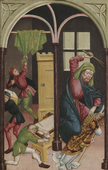 Y después de un tiempo, cuando el judío estaba fuera, llegaron los ladrones y robaron todos sus bienes, y dejaron sin llevarse solo la imagen. Y cuando el judío regresó a casa lo encontró despojado de todos sus bienes.