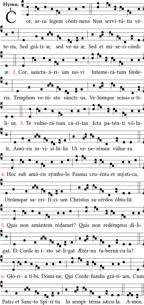 Cor Arca Legem Continens (Corazón, Arca que Contiene la Ley) es un himno gregoriano cantado durante Laudes en la Fiesta del