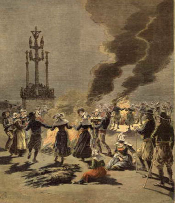 En muchos lugares de Francia, la gente eligió hacer sus hogueras cerca de una capilla dedicada a San Juan. Estos fuegos, que fueron ceremoniosamente bendecidos por el sacerdote después de las vísperas, dieron más grandeza a la práctica. La Iglesia alentó a los párrocos de todos los países a hacer una procesión de colina en colina para encender y bendecir todos los fuegos de los campesinos en el campo.