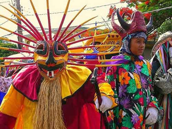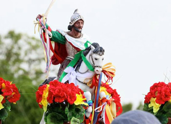 Las coloridas procesiones cuentan con cuatro grupos tradicionales de enmascarados que acompañan a la imagen. Los Caballeros representan a los caballeros españoles con sus capas verdes, rojas o amarillas y cascos de caballero de metal acentuados con cintas, campanas y espejos en una auténtica mezcla de vitalidad africana y española.