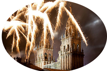 El fuego cae como estrellas del cielo Santiago de Compostela en vísperas de la fiesta de Santiago