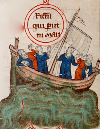 El abad no tardó en aceptar este mandato de Nuestra Señora, y la tormenta amainó milagrosamente y continuaron a salvo hasta la orilla, como ella había prometido.